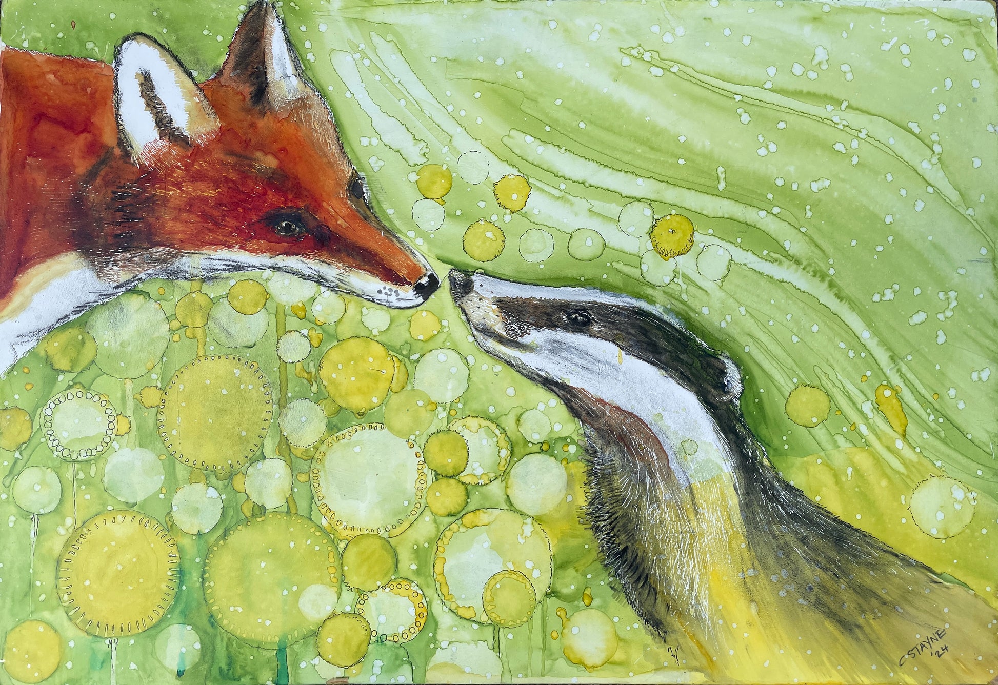An original painting on board in watercolour inks.